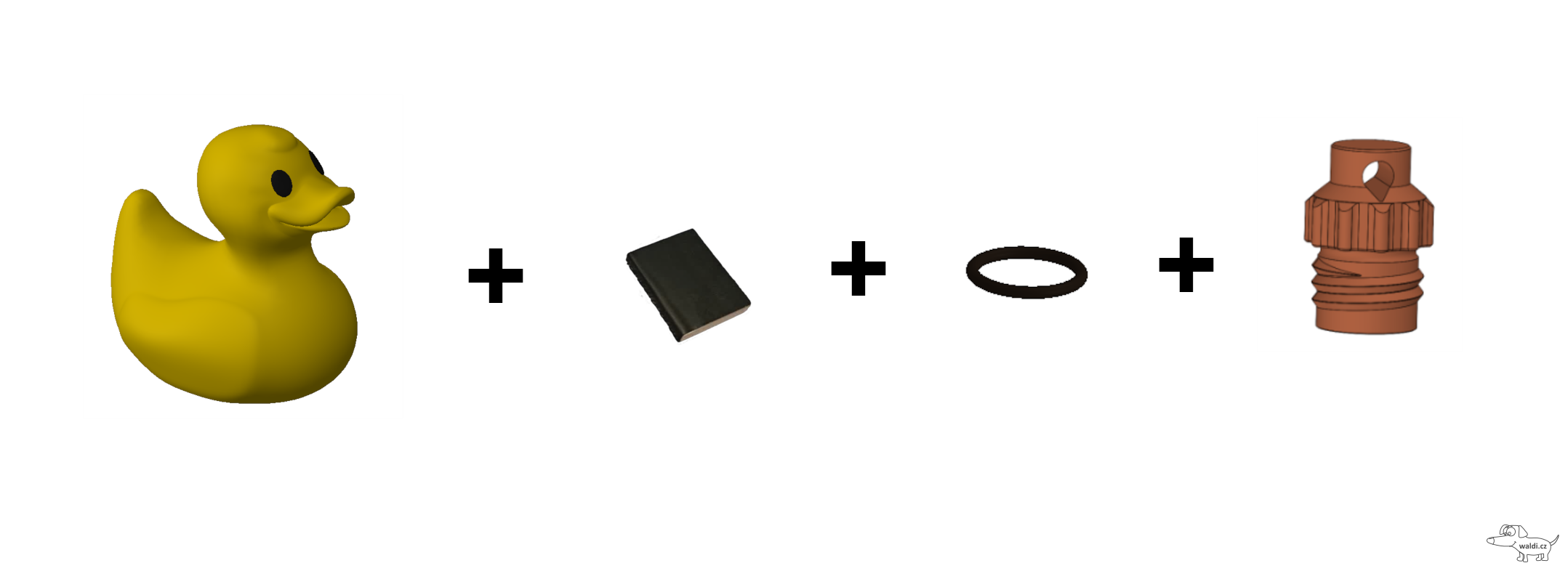 Kompletní keška ve tvaru kachničky z materiálu ASA v několika variantách (po výběru varianty se zobrazí náhled).