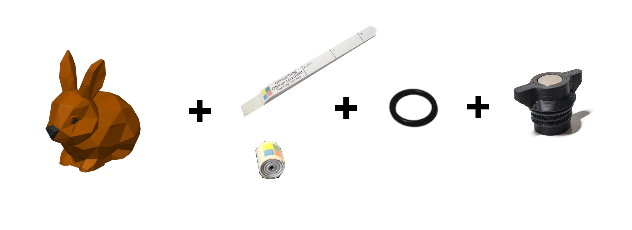 Kompletní keška ve tvaru zajíce z materiálu ASA z kolekce "cute city NANO" magnetických keší.